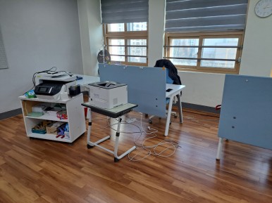 교무실 이전 설치 작업 중
