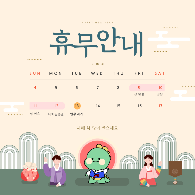 다가오는 2월 9일(금)부터 설 연휴가 시작됩니다.
