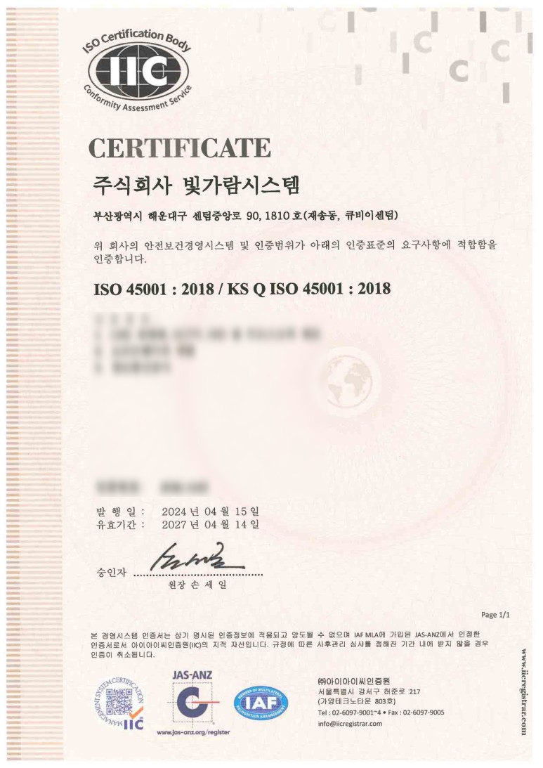 'ISO 45001:2018' 인증 취득을 완료했다는 것 입니다 !