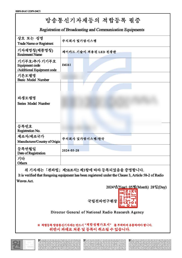 방송통신기자재등의 적합등록 필증