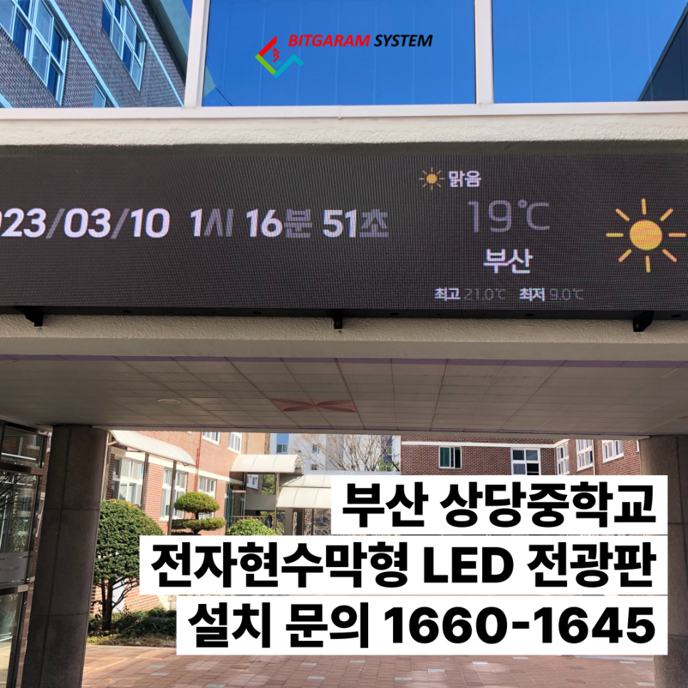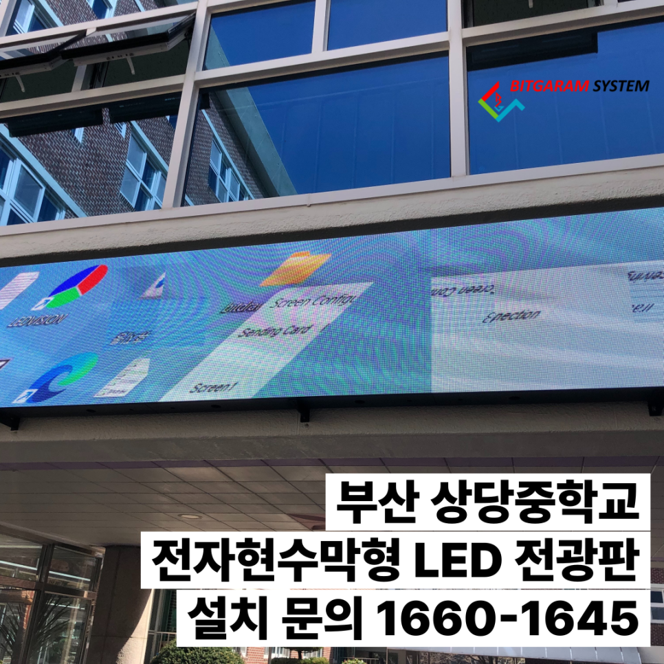 부산 상당중학교의 전자현수막형 LED 전광판 설치는