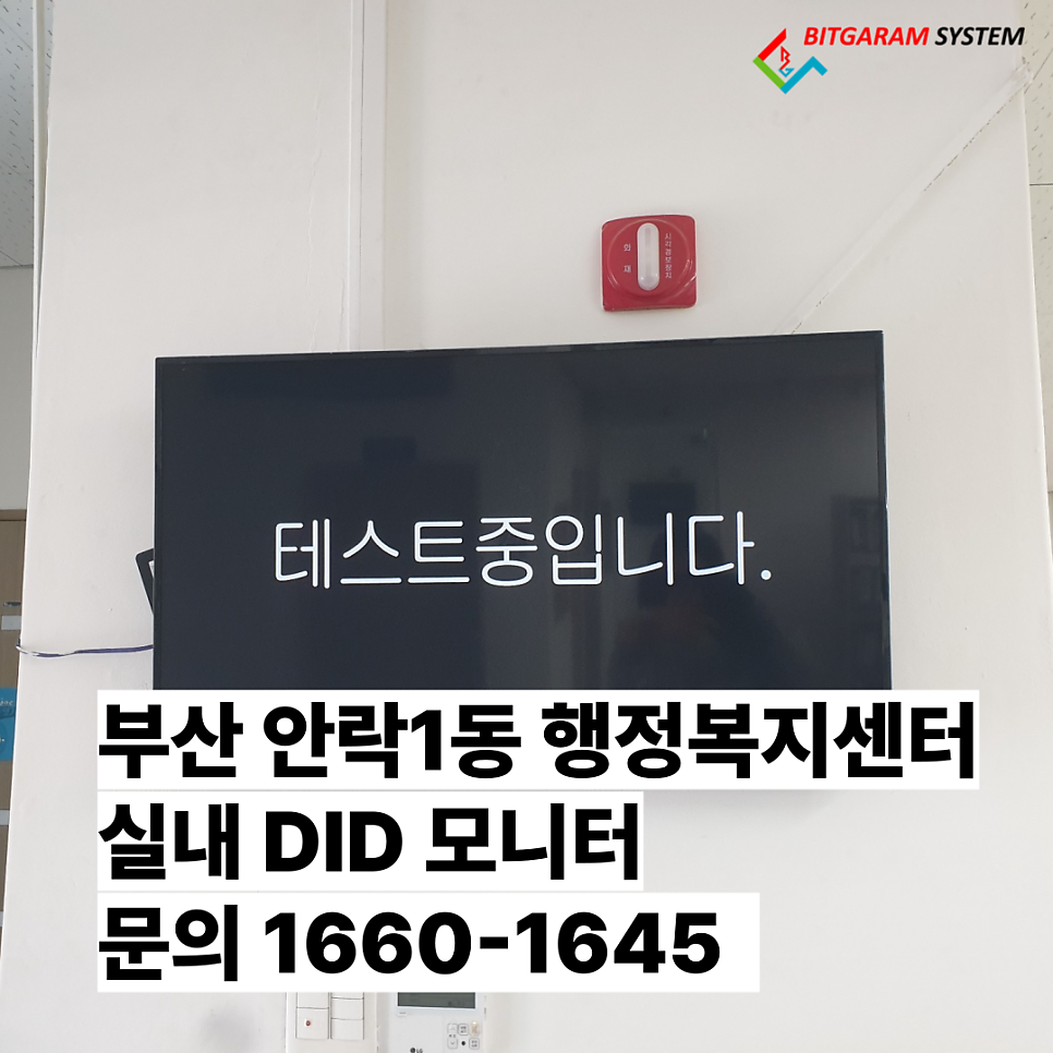 | 부산 명장1동 행정복지센터 전자게시판 DID 설치 (주)빛가람시스템 (0) | 2025.02.25 |